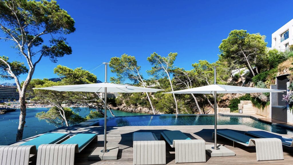 In einer der begehrtesten Villenwohnlagen von Camp de Mar erwartet Sie diese außergewöhnliche Luxusresidenz mit einem atemberaubenden Panoramablick auf das Meer. Auf einem großzügigen Grundstück von ca. 1.980 m² erstreckt sich eine beeindruckende, hochwertig bebaute Fläche von ca. 1.070 m², die höchsten Wohnkomfort und exklusive Ausstattung vereint. Die Villa besticht durch ein großzügiges Wohn- und Esszimmer mit Kamin und bodentiefen Panoramafenstern, die ein einzigartiges Lichtambiente schaffen. Eine stilvolle Designer-Küche erfüllt höchste Ansprüche. Mit insgesamt sieben eleganten Schlafzimmern und acht luxuriösen Bädern bietet das Anwesen ausreichend Platz für Familie und Gäste. Ein zusätzliches Gäste-WC sorgt für noch mehr Komfort. Zur hochwertigen Ausstattung gehören Fußbodenheizung, Klimaanlage (warm/kalt), eine moderne Alarmanlage sowie ein innovatives Domotic-System für maximalen Wohnkomfort. Ein großzügiger Kellerbereich beherbergt eine Sauna und einen exklusiven Indoor-Pool – ein privates Spa-Erlebnis der Extraklasse. Ein Aufzug verbindet alle Ebenen des Hauses. Der liebevoll gestaltete Garten mit automatischer Bewässerung lädt zum Entspannen ein. Ein Außenpool mit Jacuzzi rundet das luxuriöse Outdoor-Erlebnis ab. Zwei Doppelgaragen bieten ausreichend Platz für Fahrzeuge. Diese Villa vereint herausragende Bauqualität mit modernster Technik und exquisiter Ausstattung – ein wahres Juwel in einer der exklusivsten Lagen Mallorcas.
