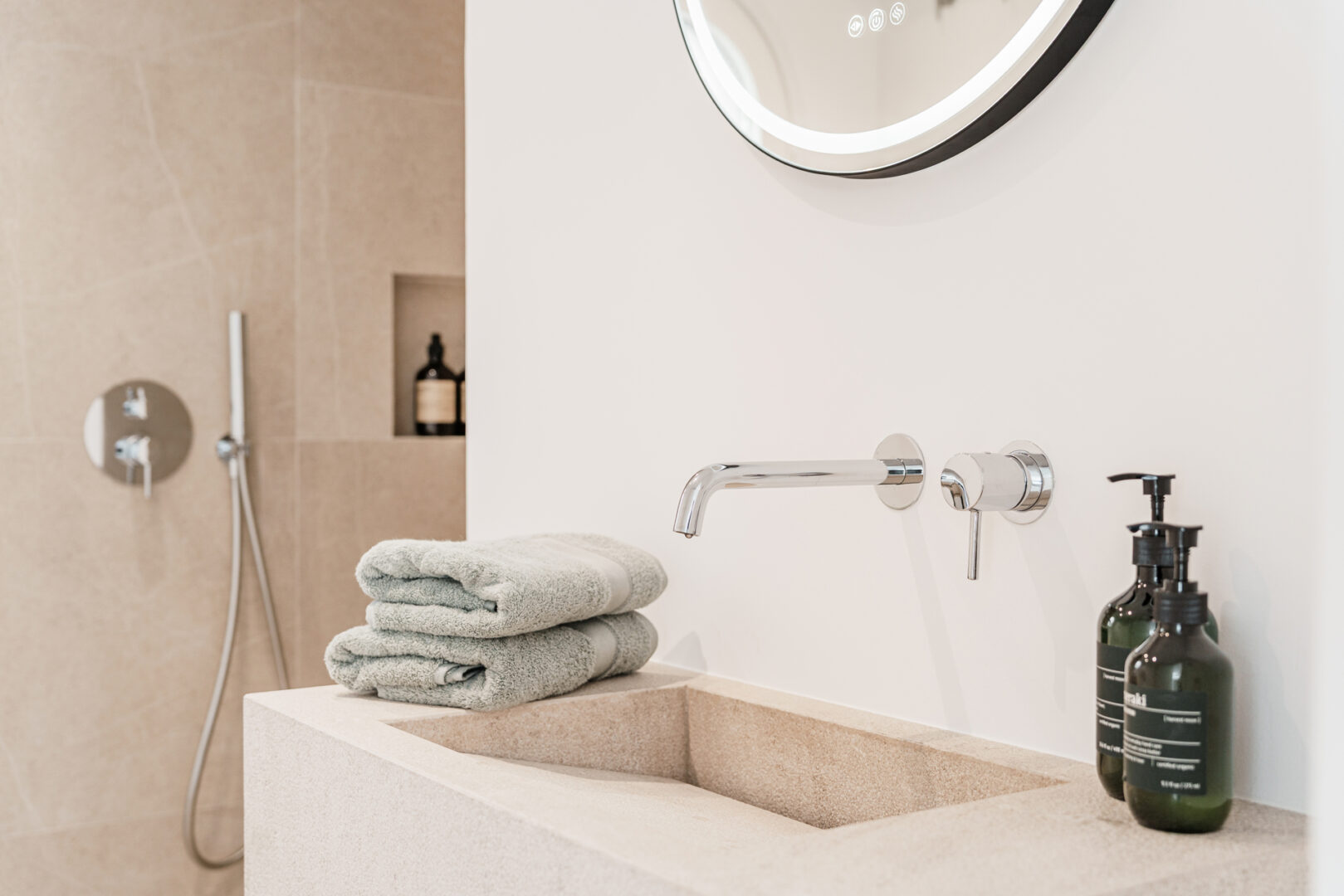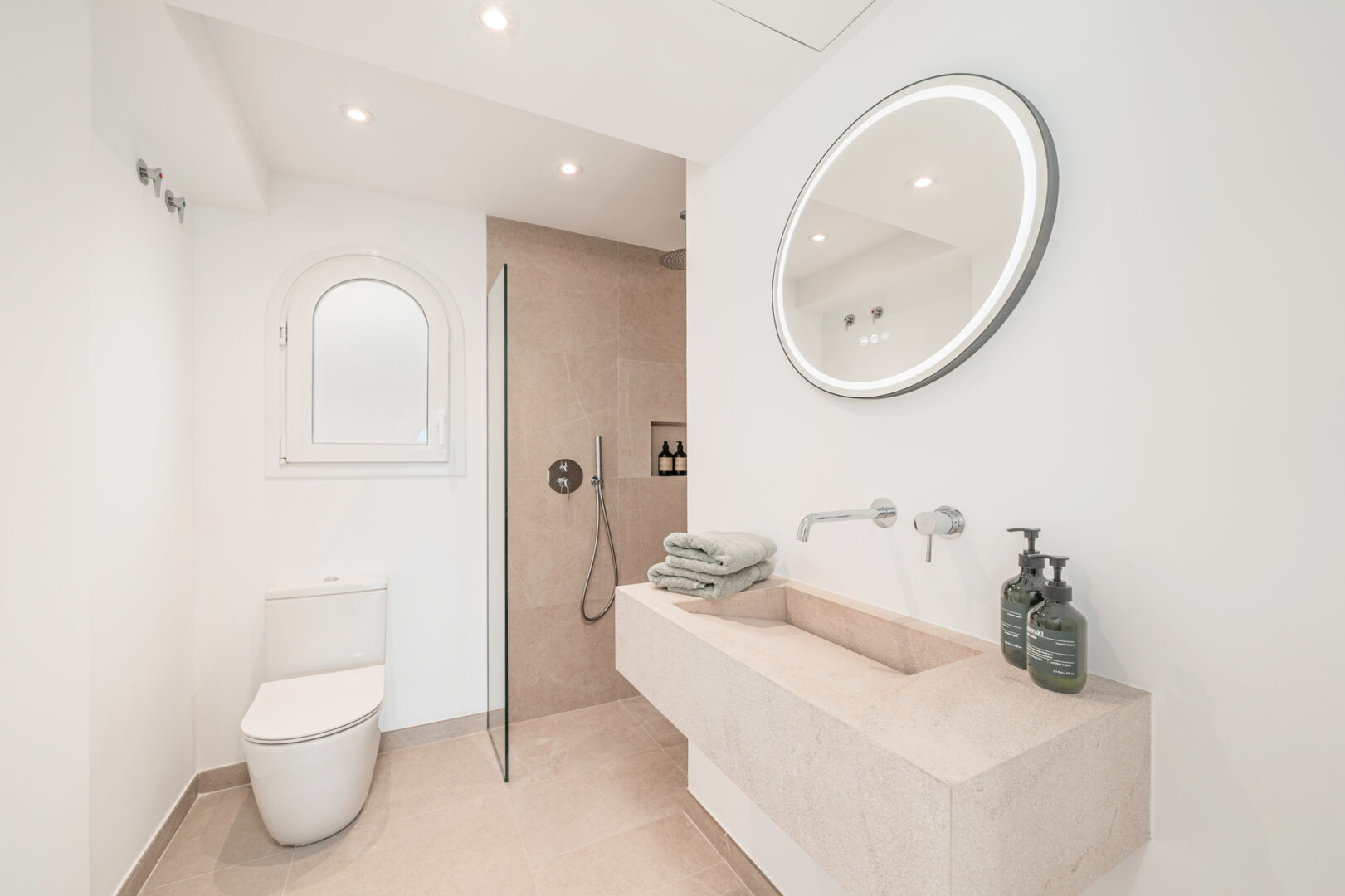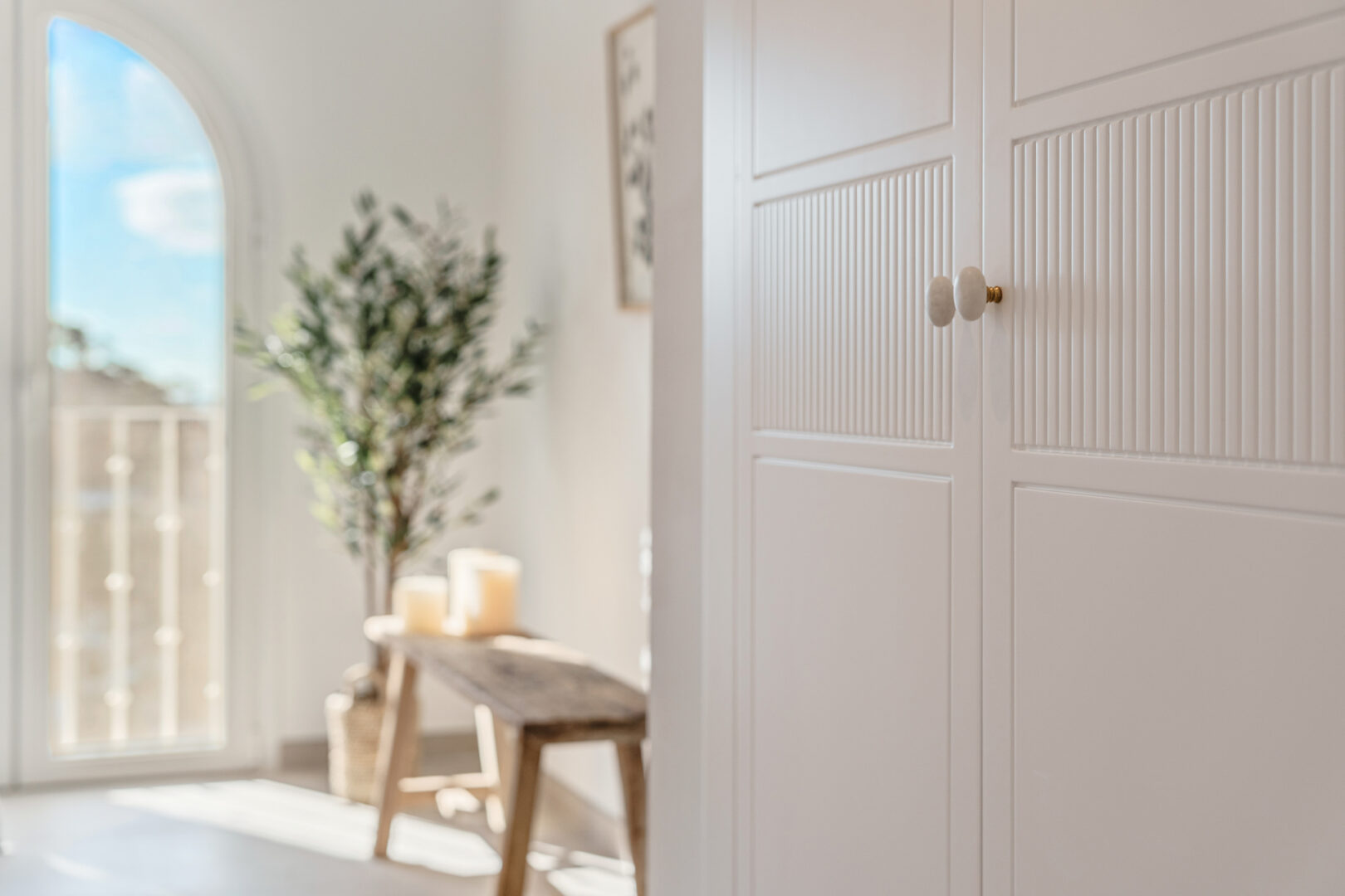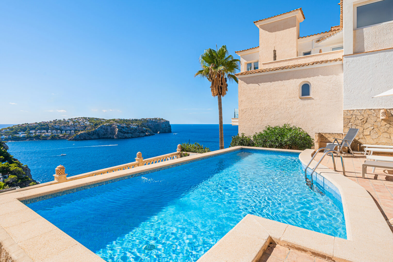 Dieses Apartment ist ein wahres Juwel moderner Architektur – vollständig kernsaniert und mit feinsten Materialien ausgestattet. Auf rundum zwei lichtdurchfluteten Zimmern vereint es zeitlose Eleganz mit höchstem Wohnkomfort. Die großzügige Wohnküche ist ein Highlight: eine Designküche von Espacio, ausgestattet mit modernster Technik von Bora und Miele. Bodentiefe Fenster, die nahtlos in der Wand verschwinden, lassen Innen- und Außenbereich verschmelzen und schaffen ein einzigartiges Wohngefühl. Die technische Ausstattung erfüllt höchste Ansprüche: Fußbodenheizung für behagliches Klima, zwei exklusive Badezimmer – eines davon en suite – sowie eine integrierte Waschmaschine machen das Apartment ebenso praktisch wie luxuriös. Die Lage ist unvergleichlich: Der Blick schweift über La Mola, die idyllische Cala Moragues, die Hafeneinfahrt bis hinaus aufs weite Meer. Von morgens bis abends begleitet Sie die Sonne. Komfort steht hier an erster Stelle: Ein Aufzug im Haus garantiert nahe Barrierefreiheit, während die gepflegte Wohnanlage mit ihrem Pool zusätzlichen Mehrwert bietet. Ein rundes Gesamtpaket für alle, die modernes Wohnen, mediterranen Lifestyle und höchste Lebensqualität in exklusiver Lage miteinander verbinden möchten.