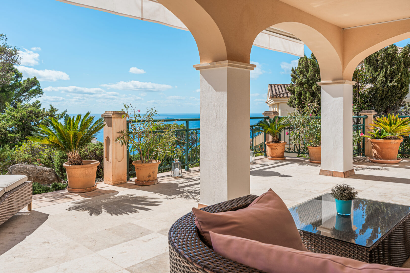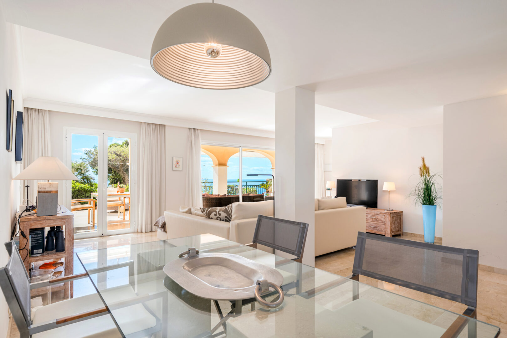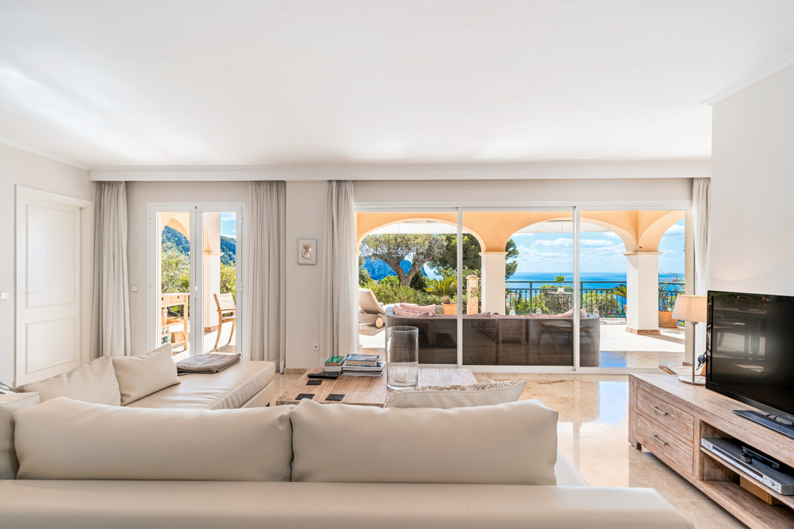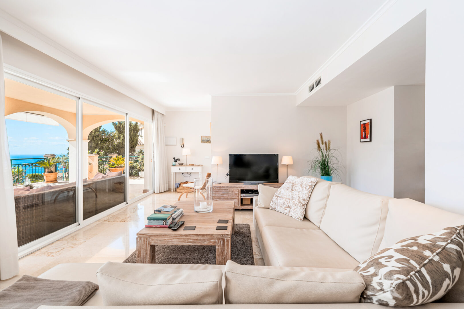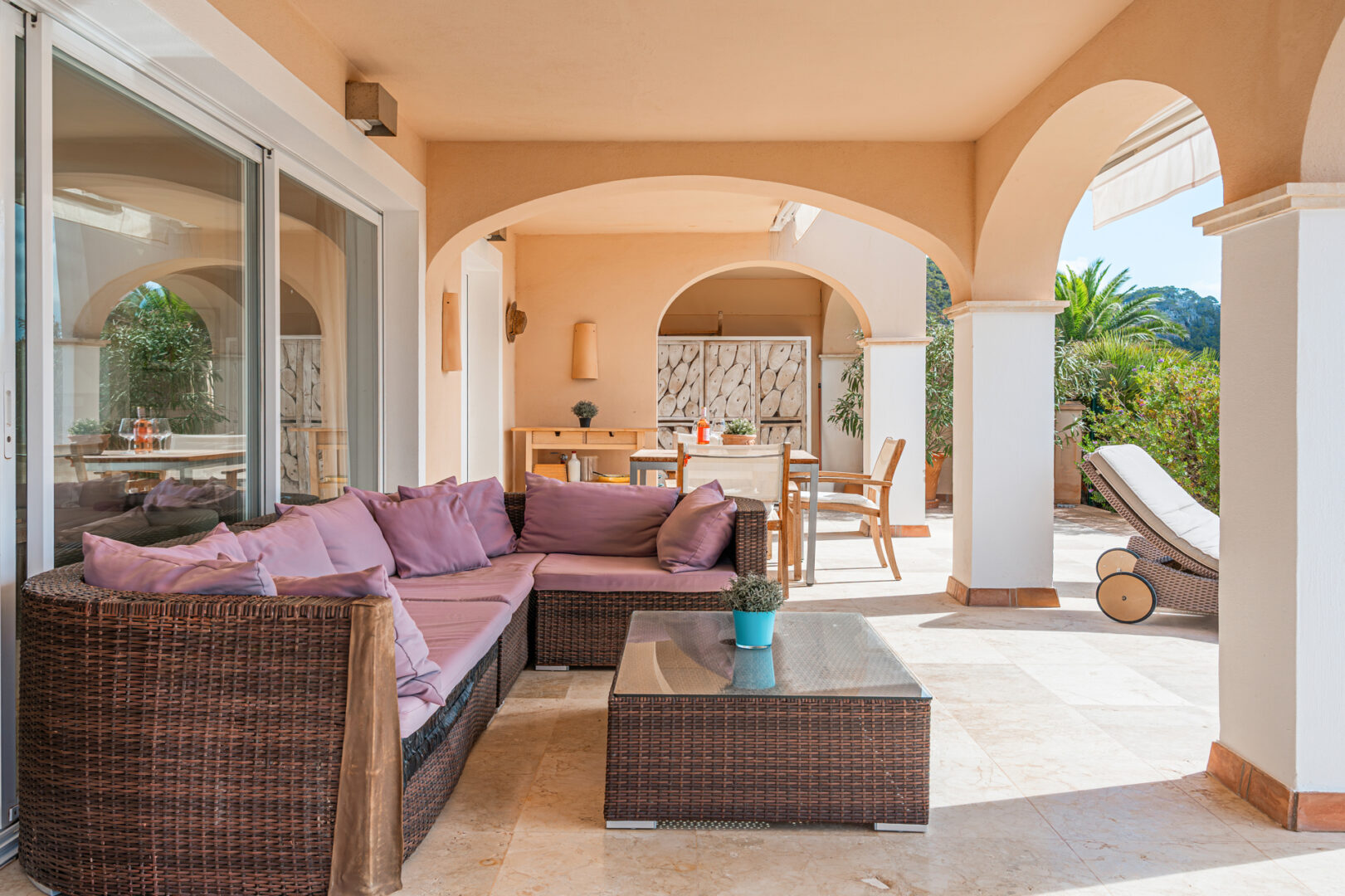 Diese großzügige Wohnung befindet sich in einer gepflegten Wohnanlage in Port Andratx und zeichnet sich durch ihre ruhige Lage sowie eine durchdachte Raumaufteilung aus. Zum Objekt gehören zwei Stellplätze sowie ein nahezu barrierefreier Zugang zur Wohnung, der zusätzlichen Komfort bietet. Ein privater Garten mit rund 70 m² Fläche ist in den Wohnbereich integriert und bietet vielfältige Nutzungsmöglichkeiten. Die große Terrasse ist teilweise überdacht und durch Markisen flexibel beschattbar – ideal für entspannte Stunden im Freien und lange Sommerabende. Der helle Wohn- und Essbereich ist offen gestaltet und verbindet sich mit der Küche, wodurch ein komfortabler Mittelpunkt des täglichen Lebens entsteht. Neben der Küche befindet sich ein praktischer Hauswirtschaftsraum. Die beiden Schlafzimmer liegen zur Privatsphäre optimal getrennt links und rechts des zentralen Wohnbereiches. Beide verfügen über en-suite Badezimmer, wodurch ein hohes Maß an Komfort gewährleistet ist. Besonders das Hauptschlafzimmer überzeugt mit einem exklusiven Wohlfühlambiente. Eine hochwertige Immobilie, die sowohl als dauerhafter Wohnsitz als auch als Zweitdomizil bestens geeignet ist.