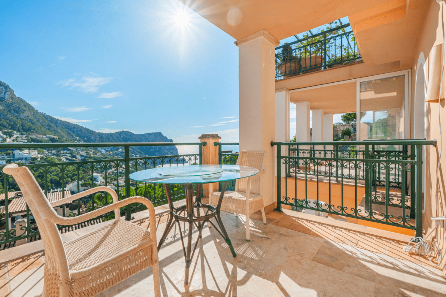 Diese hochwertige Wohnung befindet sich in einer erstklassigen Anlage in der Cala Llamp, nur wenige Minuten Fahrt vom Zentrum von Port d'Andratx entfernt. Mit einem wunderbaren Blick auf das Meer und die umliegenden Berge lässt diese Wohnung keine Wünsche offen. Das Apartment besteht aus einem großzügigen Wohnbereich mit integrierter offener Küche, drei Schlafzimmern und zwei Bädern, was eine ideale Raumaufteilung gewährleistet. Des Weiteren verfügen zwei Schlafzimmer über einen eigenen Balkon und das dritte über einen eigenen Zugang zu dem schönen Patio mit BBQ Bereich. Das Highlight der Wohnung ist zweifellos die überdachte Terrasse mit zusätzlichen 25 Quadratmetern die über das Wohnzimmer zu erreichen ist. Die Wohnanlage bietet darüber hinaus drei Gemeinschaftspools mit umliegenden Sonnenterrassen. Der Wohnung sind zwei Stellplätze zugeordnet.